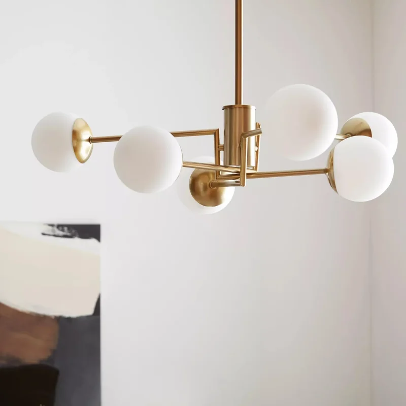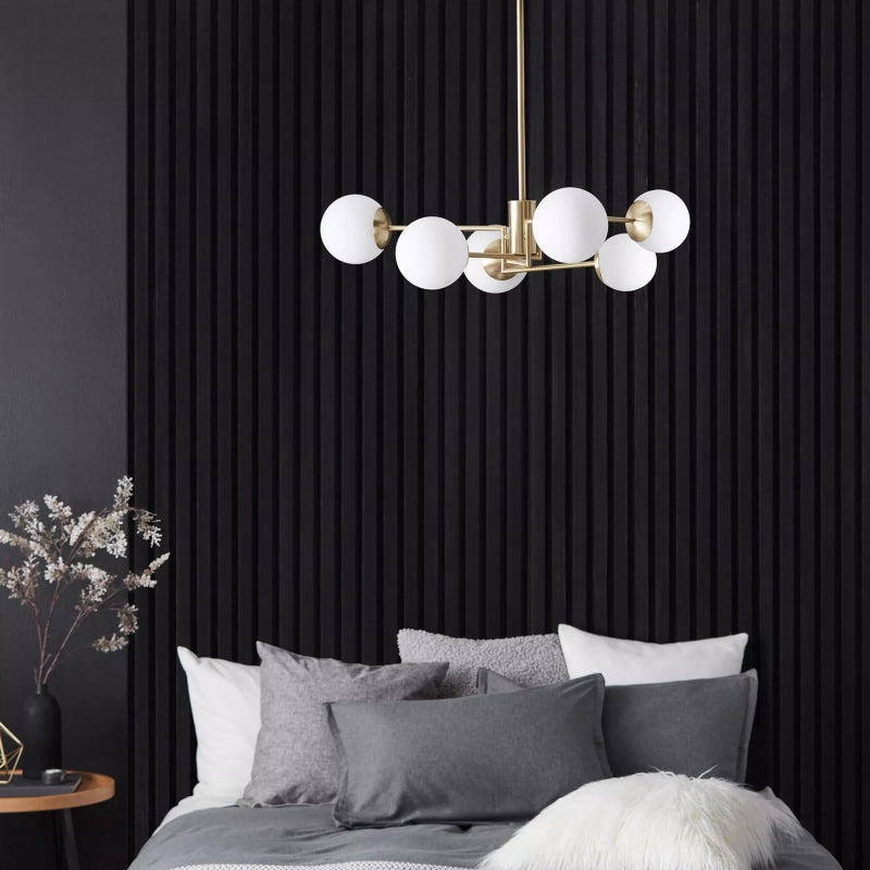 The Cedric Modern White Glass Ball Ceiling Light blends contemporary design with elegant sophistication, making it a versatile addition to modern interiors. Perfect for illuminating living rooms, dining areas, bedrooms, and entryways, this distinctive light fixture features a modern design with white glass ball elements and polished metal accents.