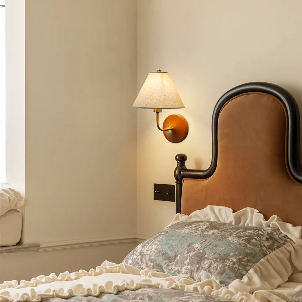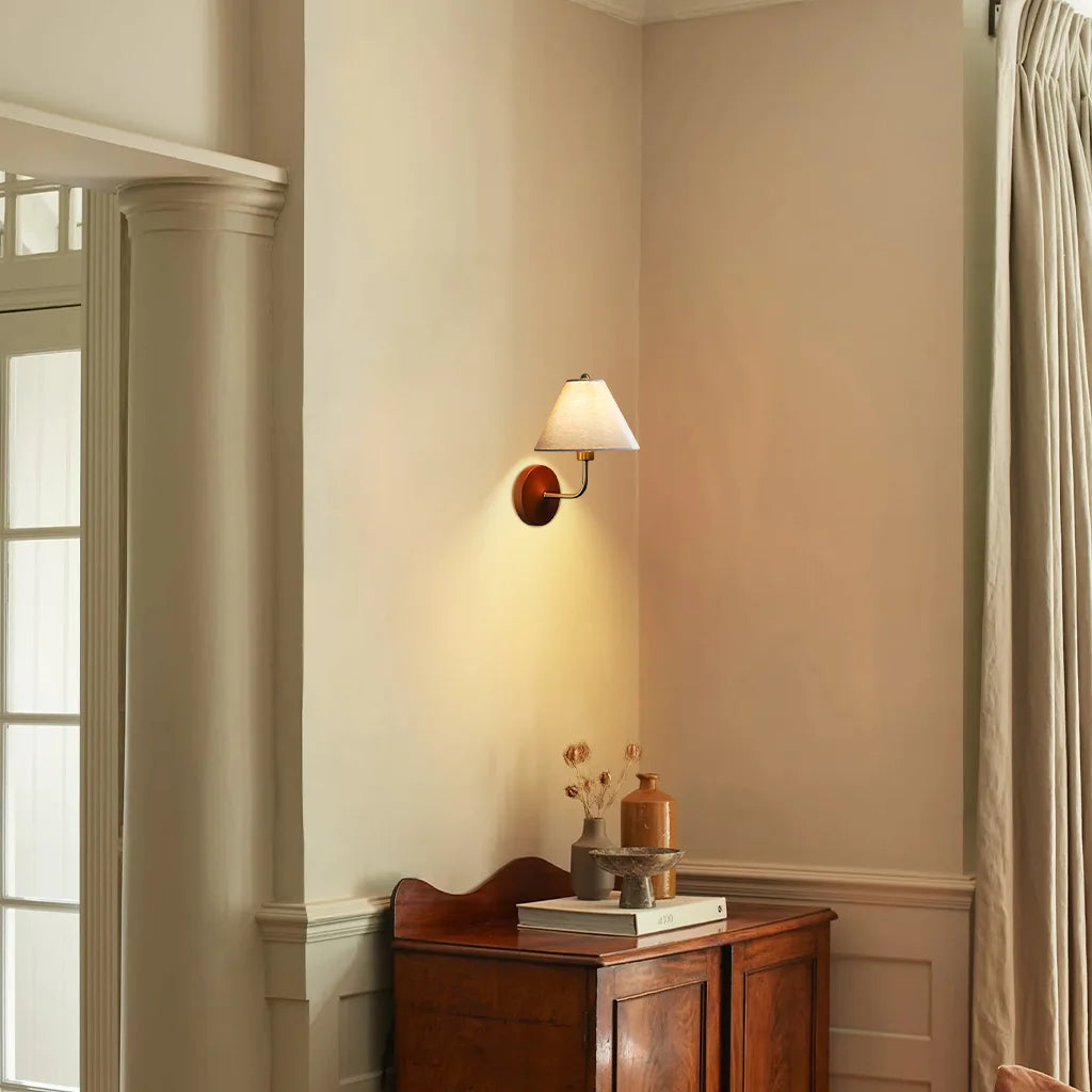 The Guinevere Vintage Linen Wall Sconce blends timeless elegance with rustic charm. Featuring a sleek arm crafted from walnut wood and topped with a soft linen lampshade, this piece offers both visual warmth and functional beauty. The linen diffuses the LED light, creating a soft, warm glow that enhances the lamp's ability to create inviting spaces.
